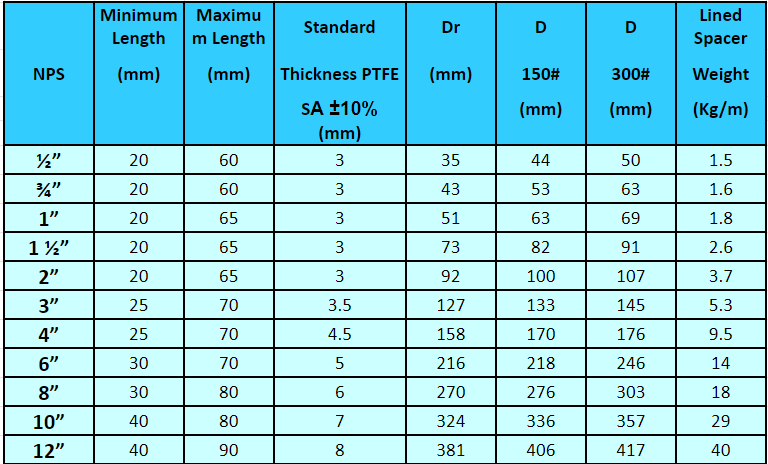 this Item is a machined steel bar and drilled like the inner diameter of a pipe and then PTFE-lined, The outer diameter fits between the flange screws and the inner diameter corresponds to the inside of a PTFE-lined pipe, It serves to close (correct) medium gaps (lenght) produced during installation assembly.